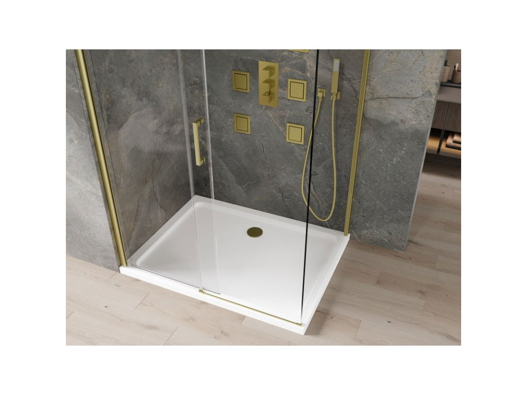 Mexen Omega sprchový kút posuvné dvere 130 x 80 cm, priehľadné sklo, profil zlatý + Flat sprchová vanička, biela - 825-130-080-50-00-4010