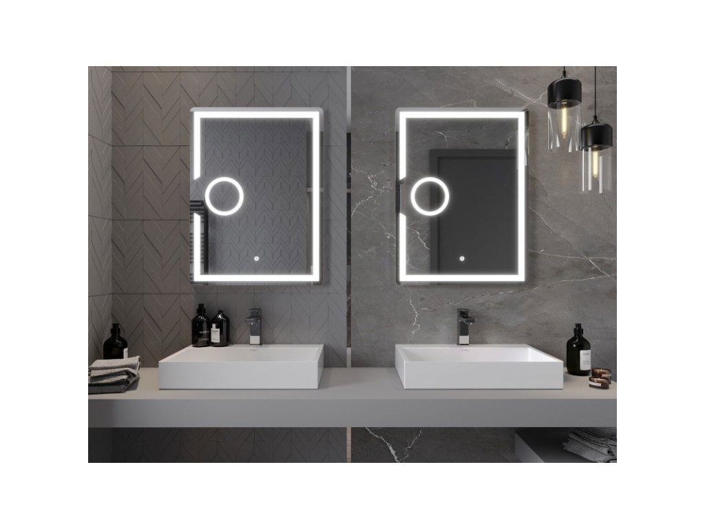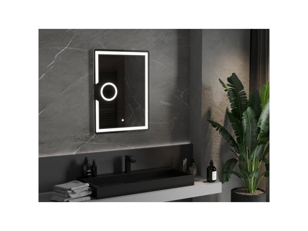 Mexen Onyx osvetlené kúpeľňové zrkadlo s kozmetickým zrkadlom 60 x 80 cm, LED 6000K, antipar - 9813-060-080-611-00