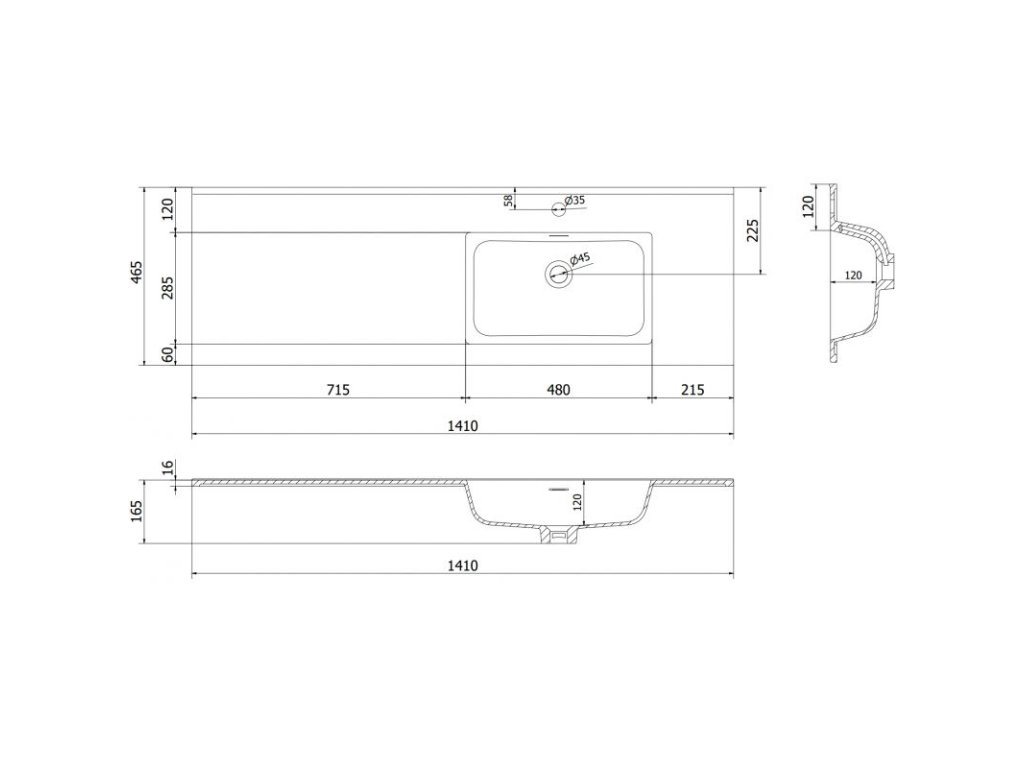 Mexen Otis umývadlo na umývanie pravé 141 x 46,5 cm, lesklá biela - 25181400P