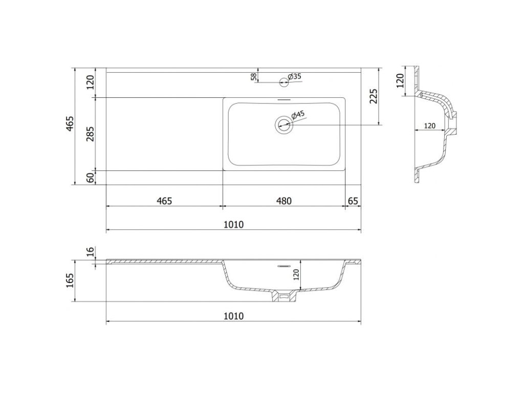 Mexen Otis umývadlo pod omietku pravé 101 x 46,5 cm, čierna matná - 25181071P
