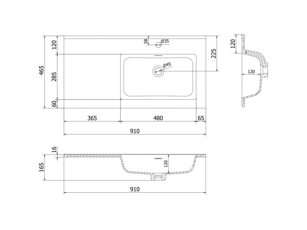 Mexen Otis umývadlo s vložkou pravé 91 x 46,5 cm, čierna matná - 25189071P