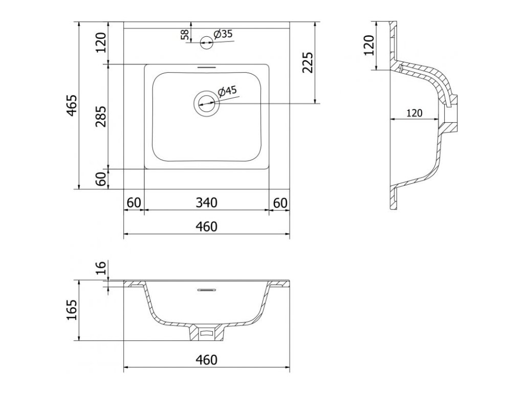 Mexen Otis vstavané umývadlo 46 x 46,5 cm, čierna matná - 25184571