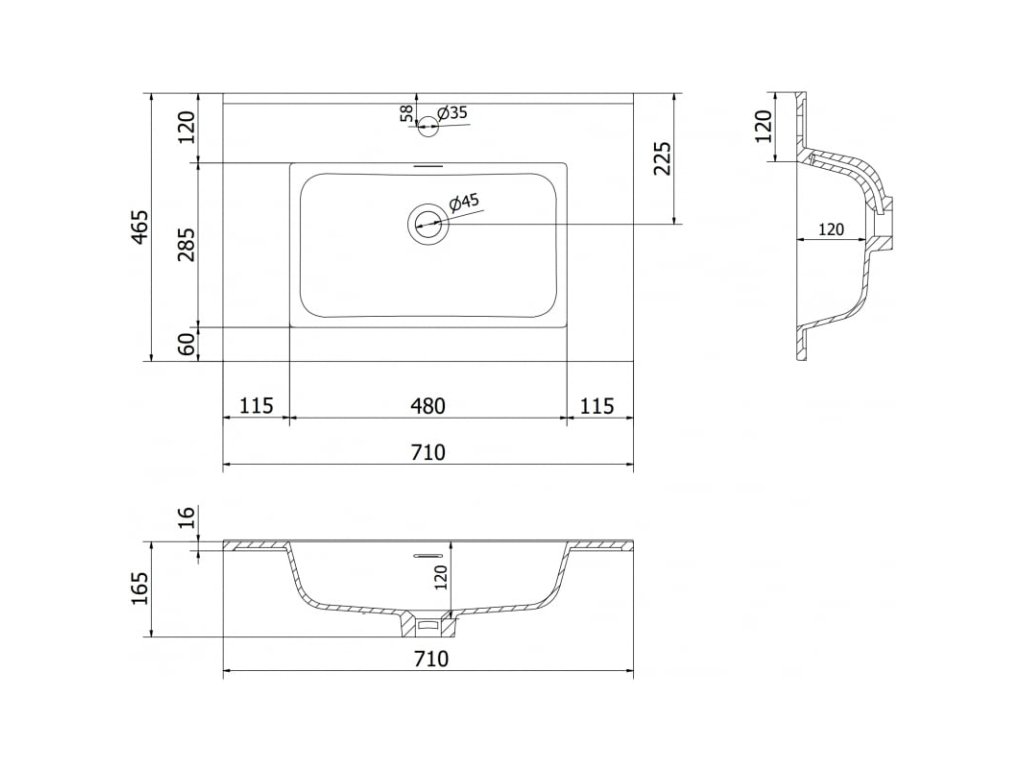 Mexen Otis vstavané umývadlo 71 x 46,5 cm, biely lesk - 25187000