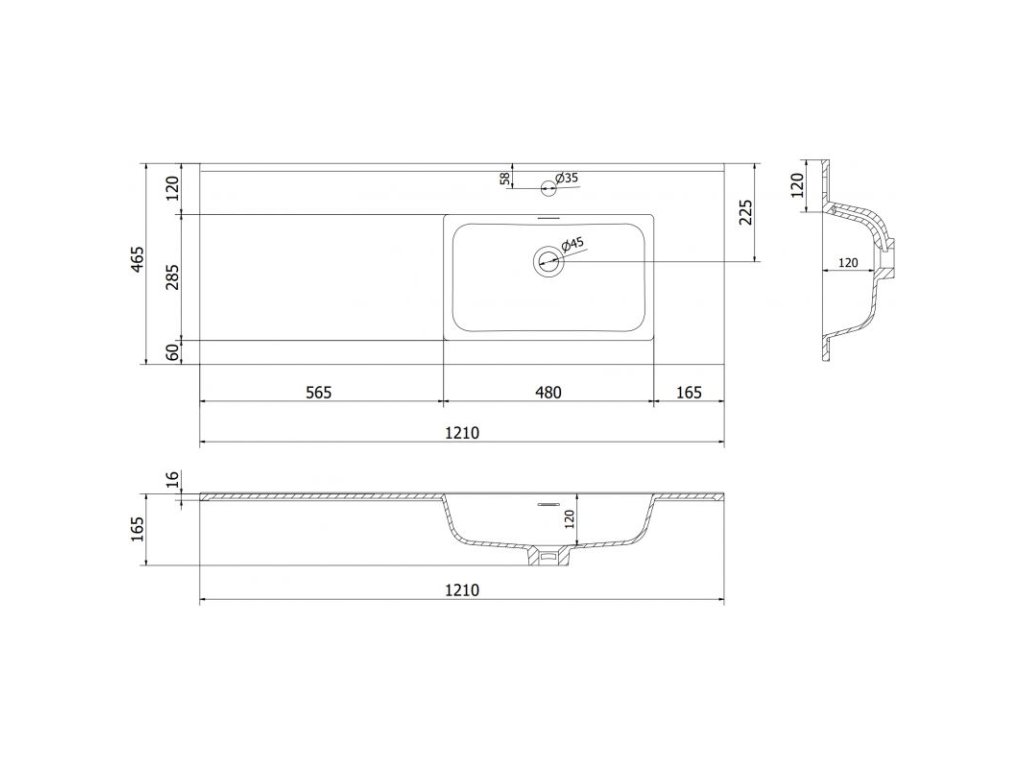 Mexen Otis vstavané umývadlo pravé 121 x 46,5 cm, lesklá biela - 25181200P