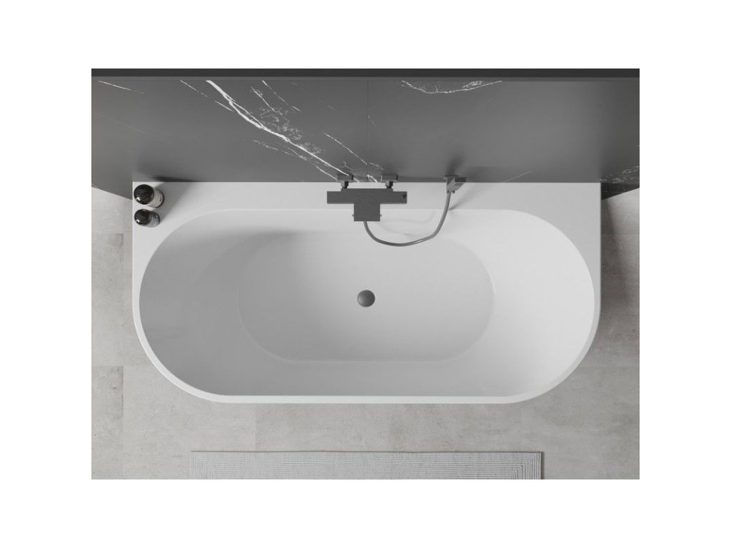 Mexen Oval+ nástenná voľne stojaca vaňa 170 x 80 cm, biela, kovový prepad - 52681708000-95