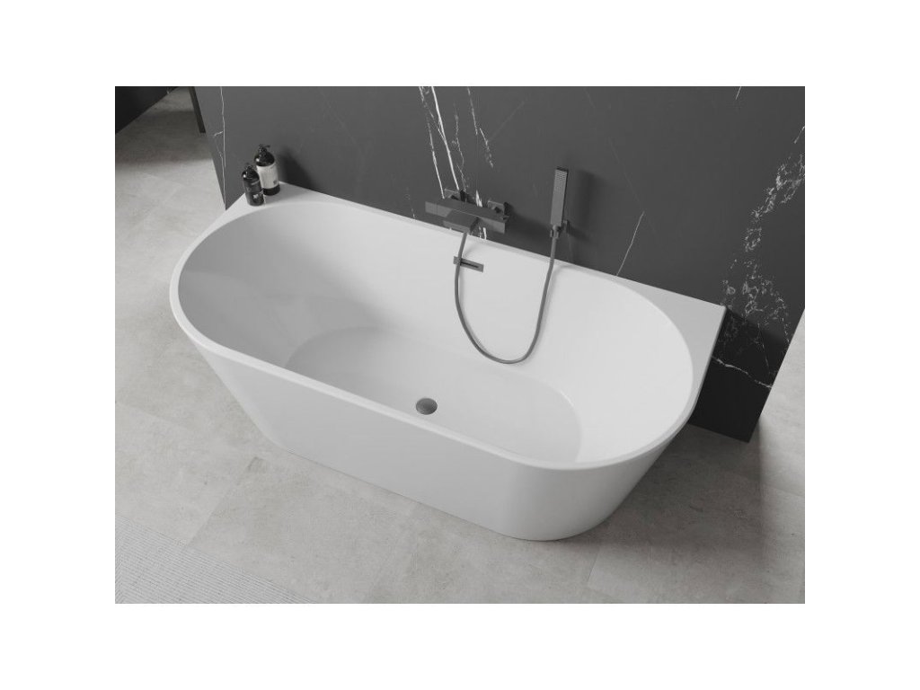Mexen Oválna nástenná voľne stojaca vaňa 150 x 75 cm, biela, kovový prepad - 52671507500-95