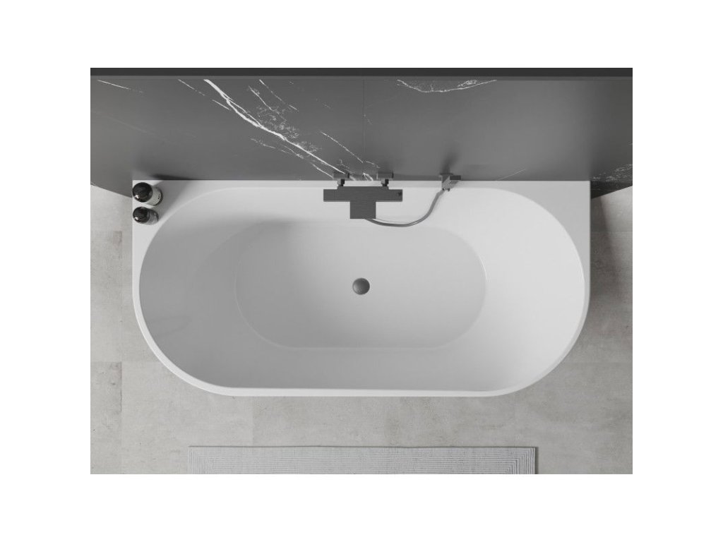 Mexen Oválna nástenná voľne stojaca vaňa 150 x 75 cm, biela, pištoľovo sivý kartáčovaný prepad - 52671507500-66
