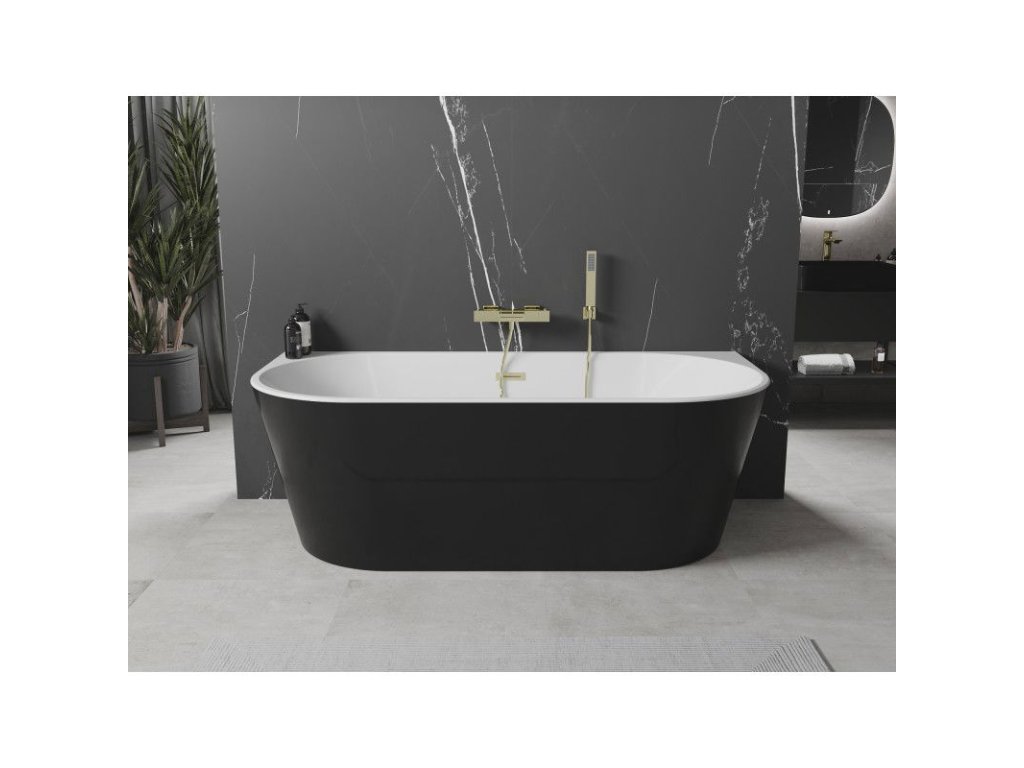 Mexen Oválna nástenná voľne stojaca vaňa 160 x 80 cm, biela/čierna, prepad z brúseného zlata - 52671608075-55