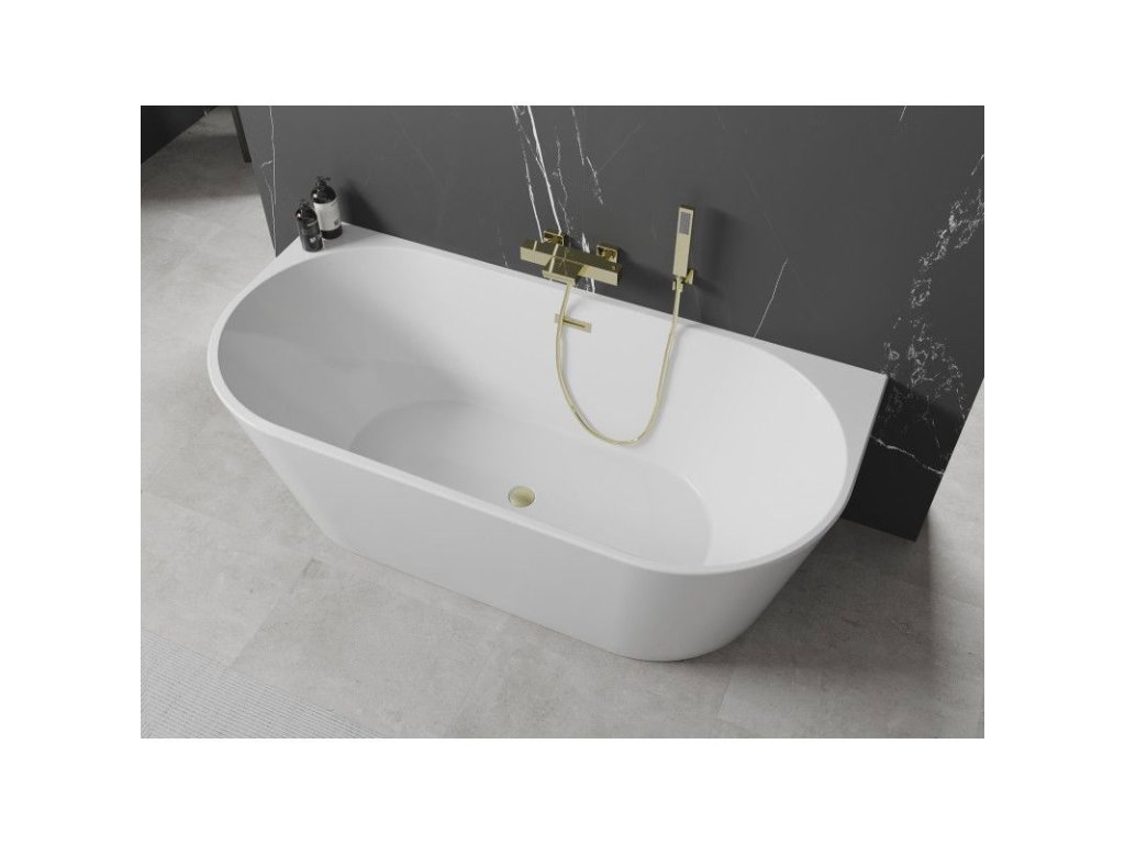 Mexen Oválna nástenná voľne stojaca vaňa 170 x 80 cm, biela, s prepadom z brúseného zlata - 52671708000-55