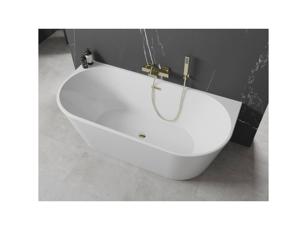Mexen Oválna nástenná voľne stojaca vaňa 170 x 80 cm, biela, zlatý prepad - 52671708000-50
