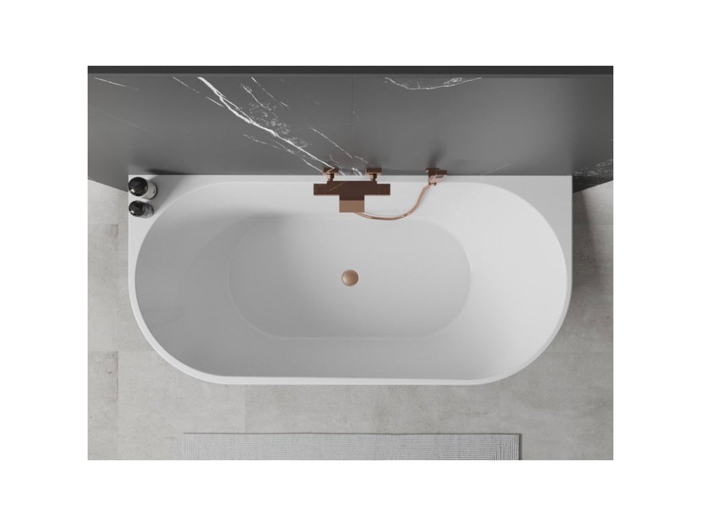 Mexen Oválna nástenná voľne stojaca vaňa 170 x 80 cm, biela/čierna, prepad brúsená meď - 52671708075-65