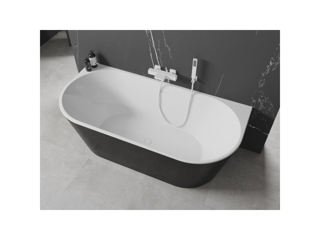Mexen Oválna voľne stojaca nástenná vaňa 140 x 75 cm, biela/čierna, prepad biely - 52671407575-20