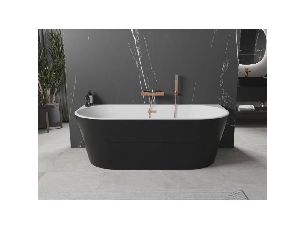 Mexen Oválna voľne stojaca nástenná vaňa 160 x 80 cm, biela/čierna, prepad z brúsenej medi - 52671608075-65
