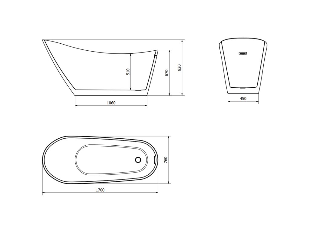 Mexen Oviedo voľne stojaca vaňa 170 x 76 cm, biela, prepad chróm - 51561707600