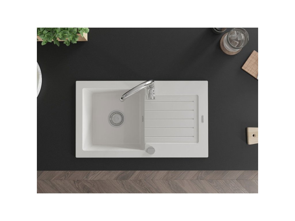 Mexen Pablo drez granitový 1-komorový s odkvapkávačom + batéria Telma, biely - 6510-20-670200-00