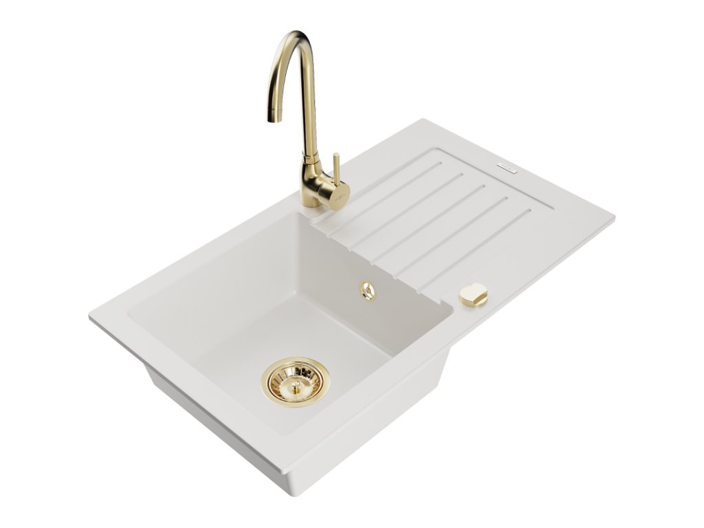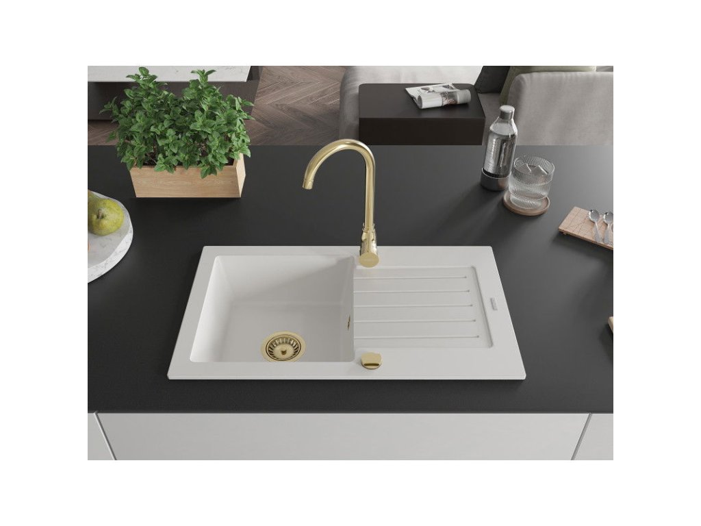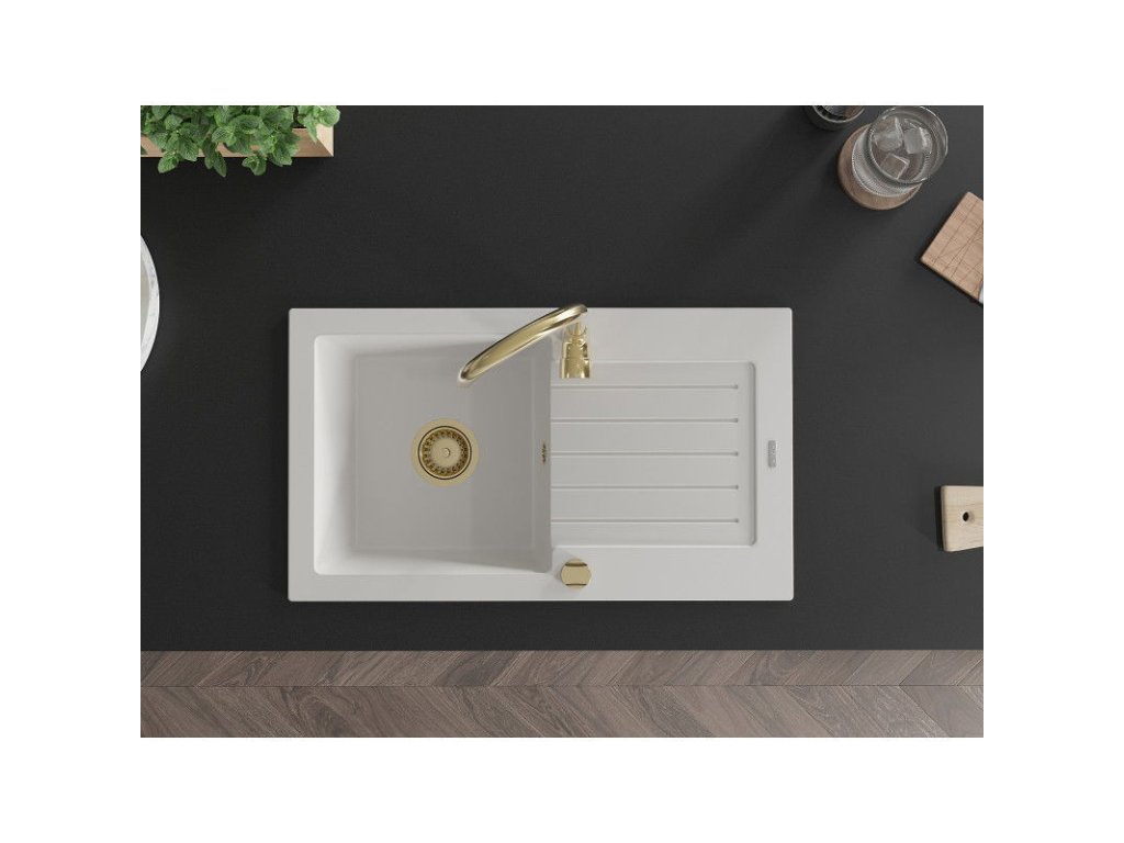 Mexen Pablo drez granitový 1-komorový s odkvapkávačom + batéria Telma, biely - 6510-20-670200-50
