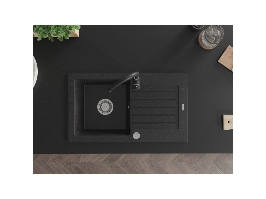 Mexen Pablo drez granitový 1-komorový s odkvapkávačom + batéria Telma, čierny/strieborný - 6510-73-670200-70