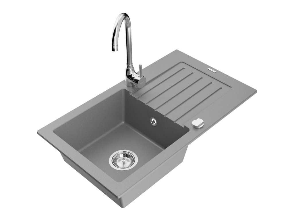 Mexen Pablo drez granitový 1-komorový s odkvapkávačom + batéria Telma, šedý - 6510-71-670200-00