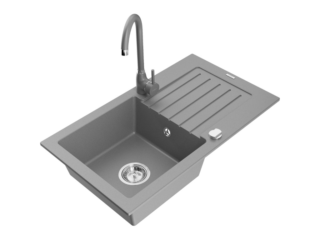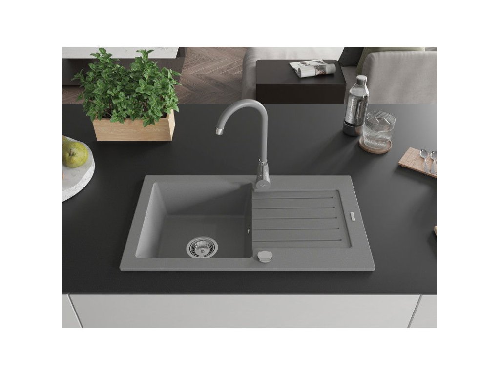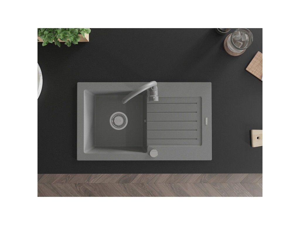 Mexen Pablo drez granitový 1-komorový s odkvapkávačom + batéria Telma, šedý - 6510-71-670200-71