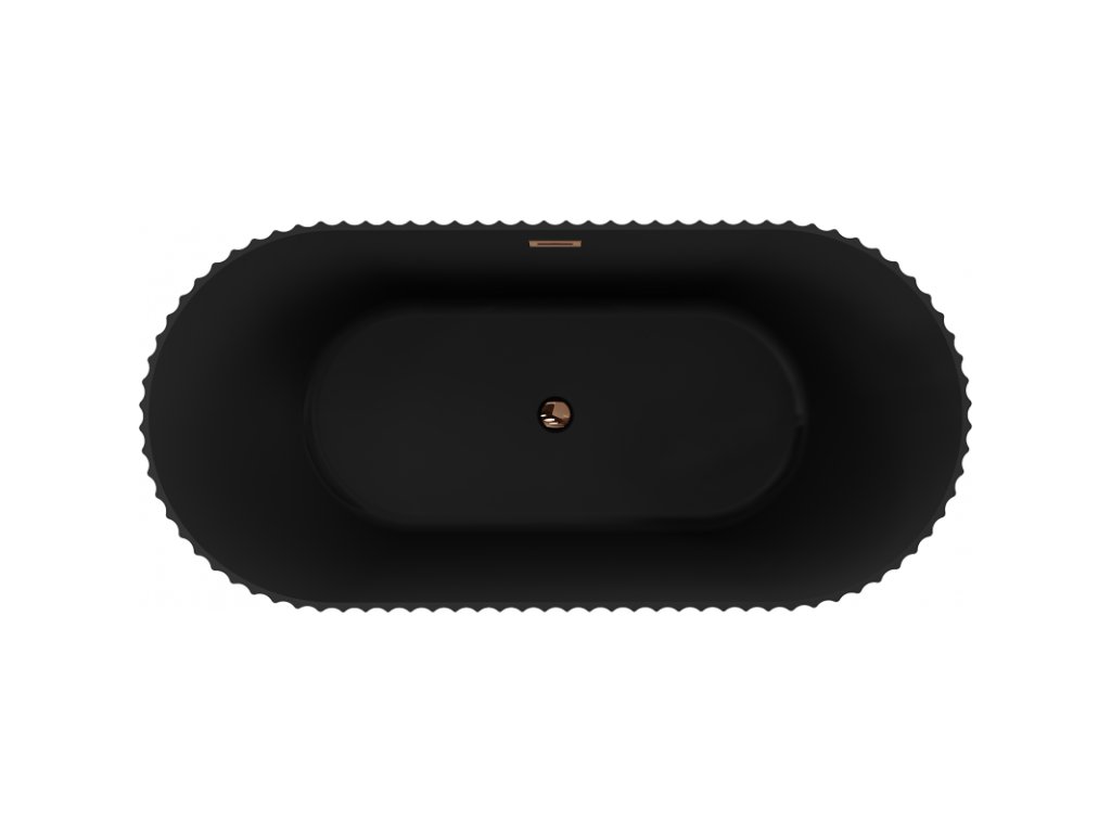 Mexen Paola voľne stojaca vaňa s ryhovaním 150 x 75 cm, čierna matná, prepad ružovo zlatý - 52721507571-60