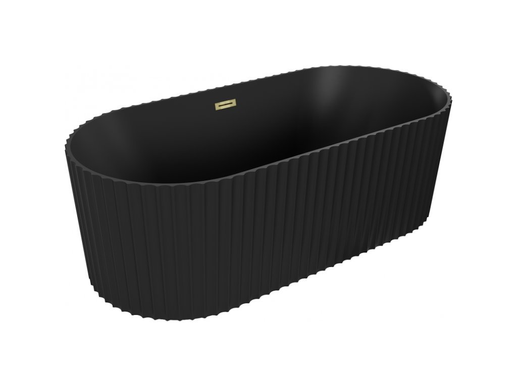Mexen Paola voľne stojaca vaňa s ryhovaním 150 x 75 cm, čierna matná, zlatý prepad - 52721507571-50