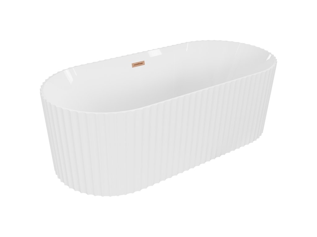 Mexen Paola voľne stojaca vaňa s ryhovaním 170 x 80 cm, biely lesk, medený prepad - 52721708000-65