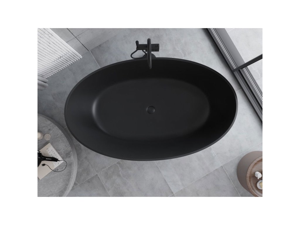 Mexen Parma voľne stojaca konglomerátová vaňa 160 x 95 cm, matná čierna - 57231609570