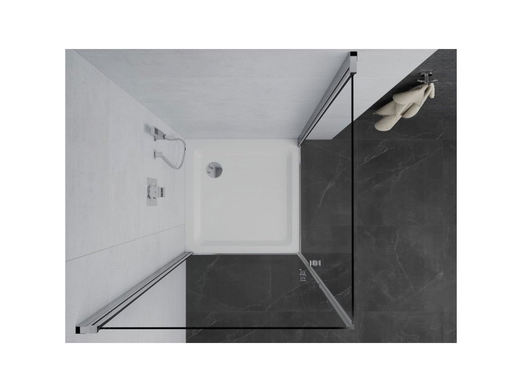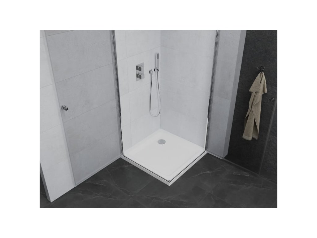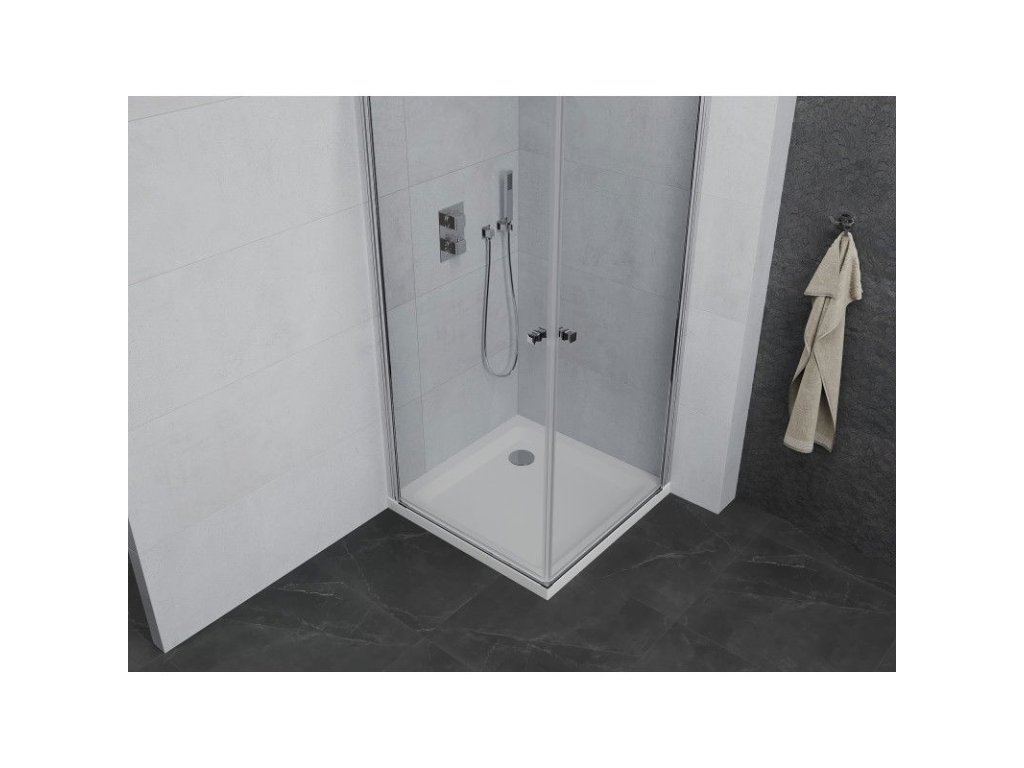 Mexen Pretoria Duo sprchový kút otvárací 70 x 70 cm, priehľadné sklo, profil chróm + sprchová vanička Flat - 852-070-070-01-02-4010