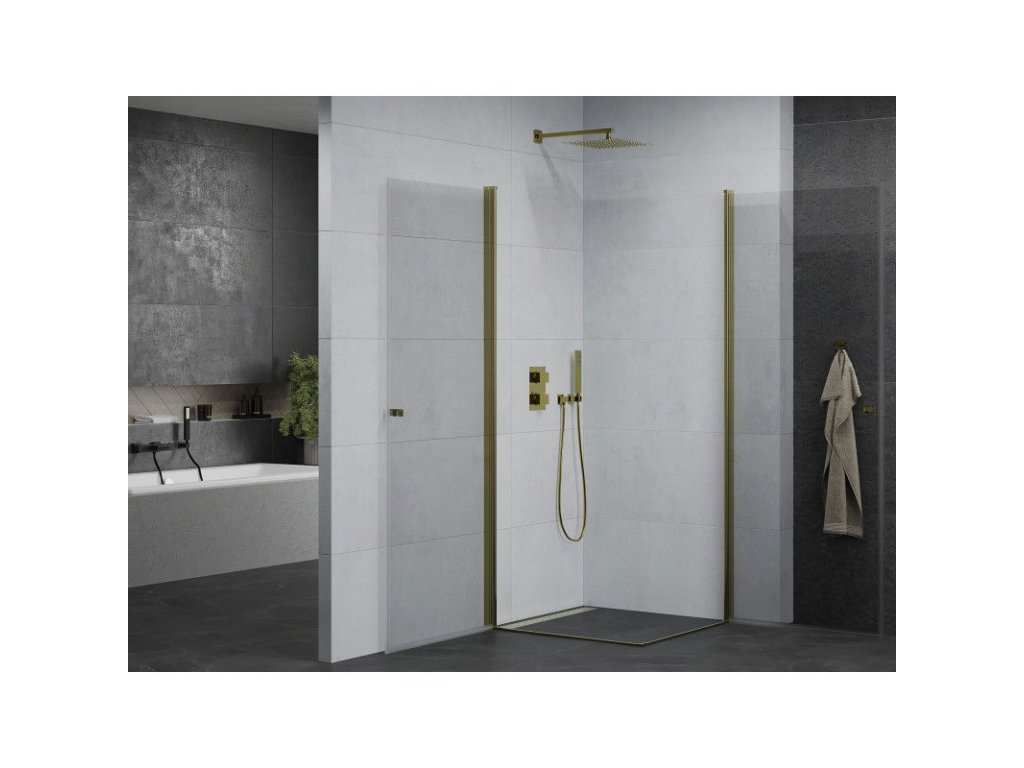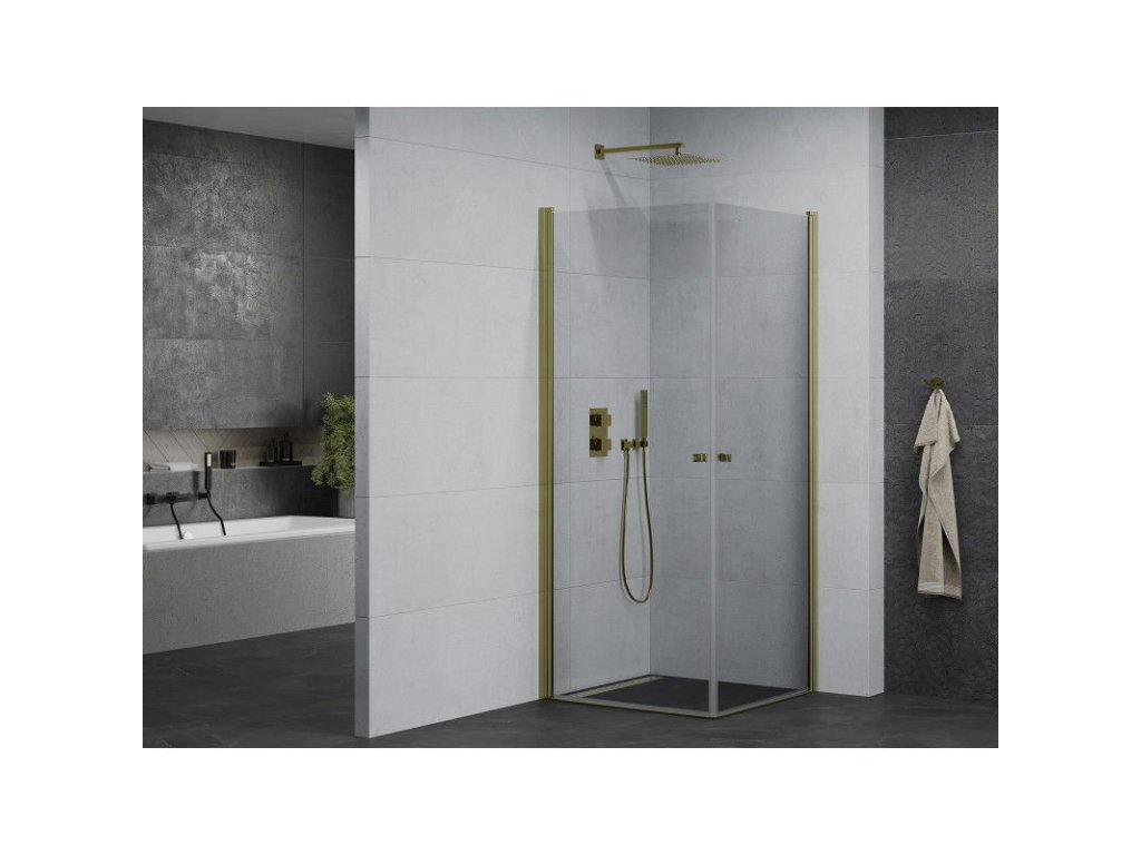 Mexen Pretoria Duo sprchový kút otvárací 80 x 80 cm, priehľadné sklo, profil zlatý - 852-080-080-50-00-02