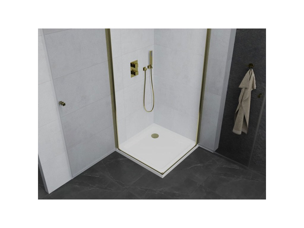 Mexen Pretoria Duo sprchový kút otvárací 80 x 80 cm, priehľadné sklo, profil zlatý + sprchová vanička Flat - 852-080-080-50-02-4010G