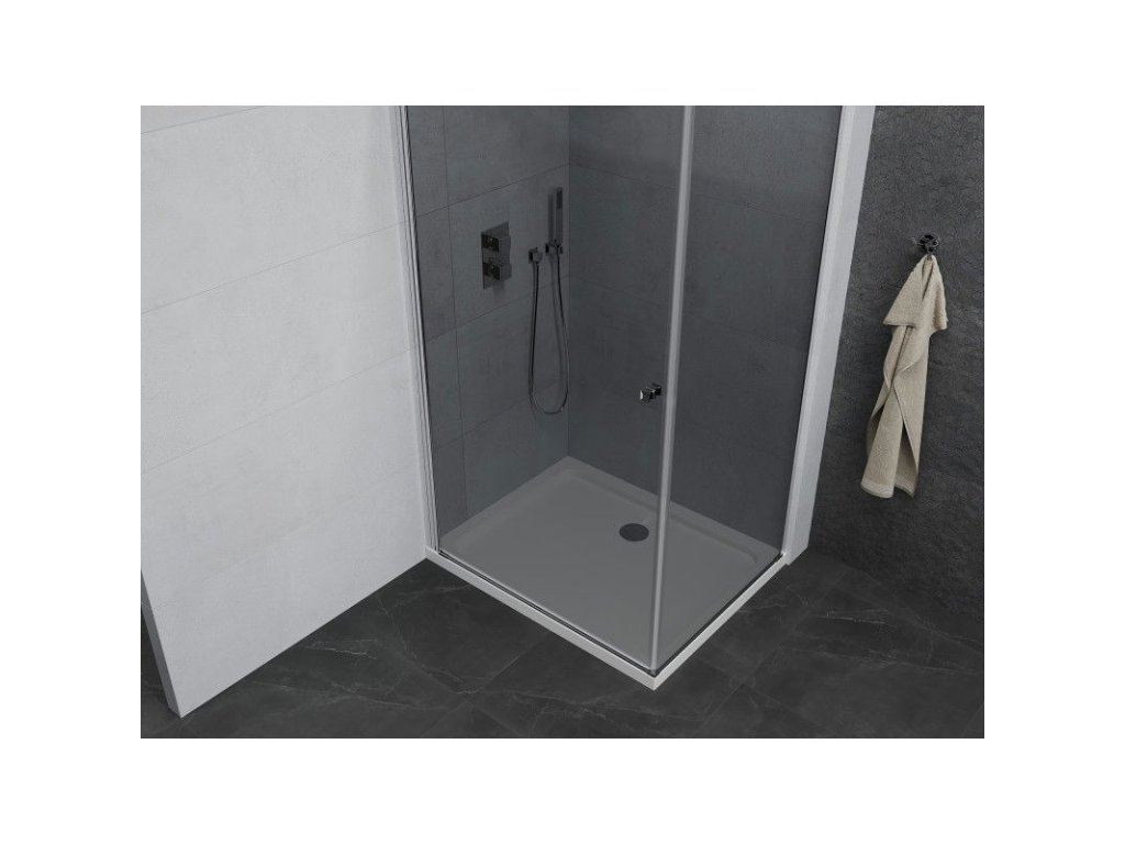 Mexen Pretoria sklápací sprchový kút 70 x 100 cm, grafit, chróm + Plochá sprchová vanička - 852-070-100-01-40-4010