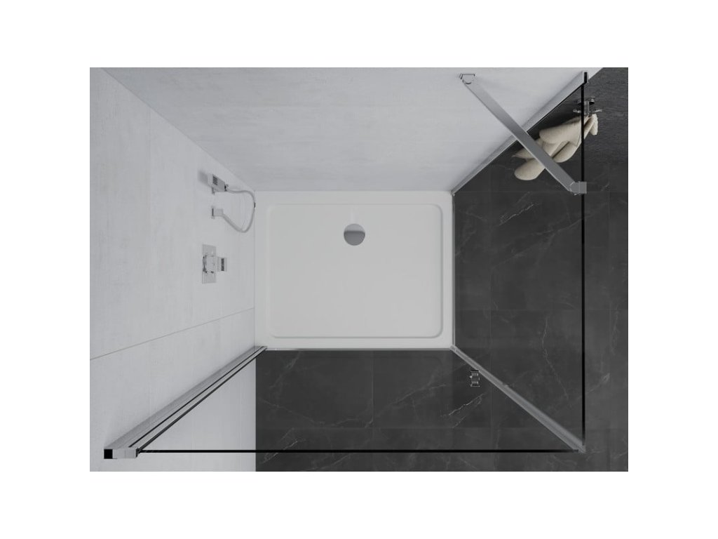 Mexen Pretoria sklápací sprchový kút 80 x 110 cm, priehľadný, chróm + Plochá sprchová vanička - 852-080-110-01-00-4010