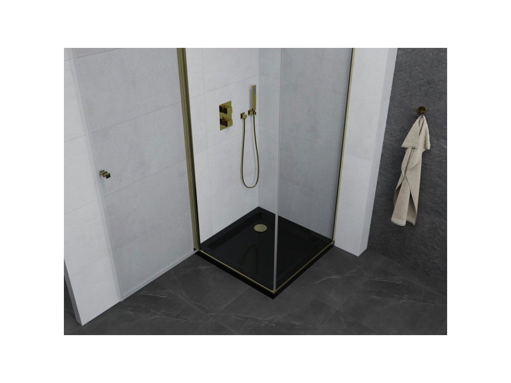 Mexen Pretoria sklápací sprchový kút 90 x 90 cm, transparentný, zlatý + Plochá sprchová vanička, čierna - 852-090-090-50-00-4070G
