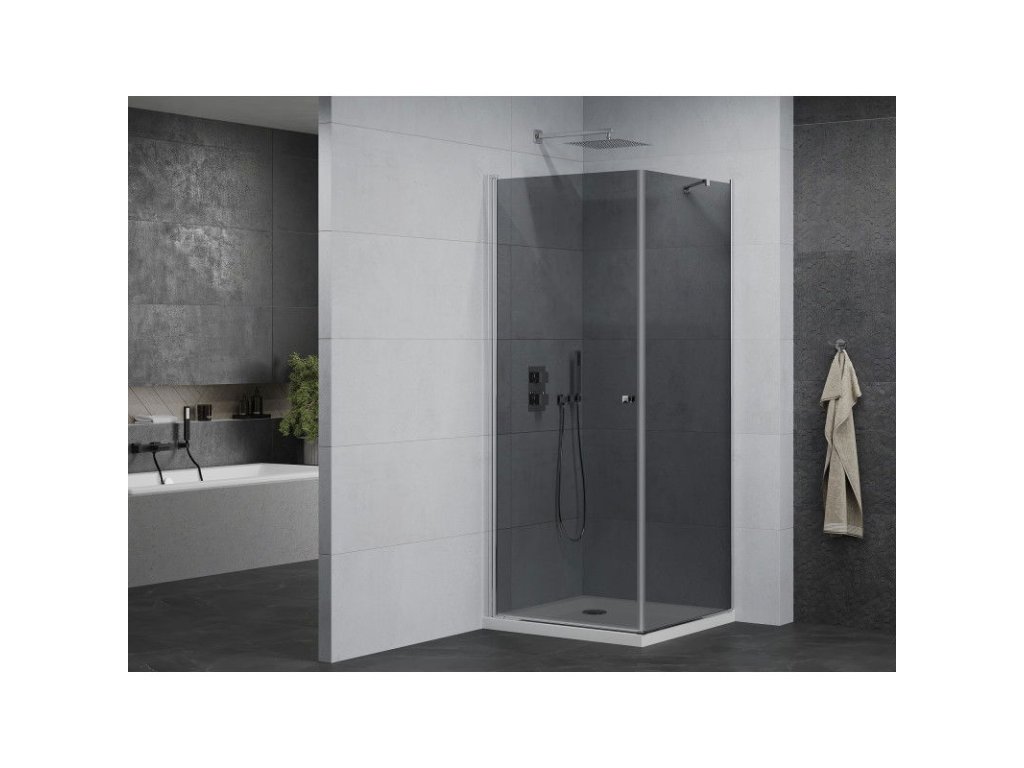 Mexen Pretoria sprchový kút otvárací 100 x 100 cm, šedé sklo , profil chróm + Flat sprchová vanička, biela - 852-100-100-01-40-4010
