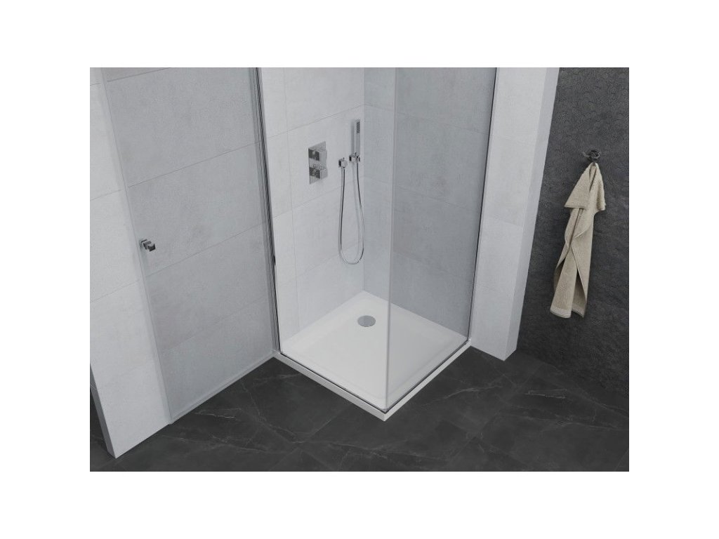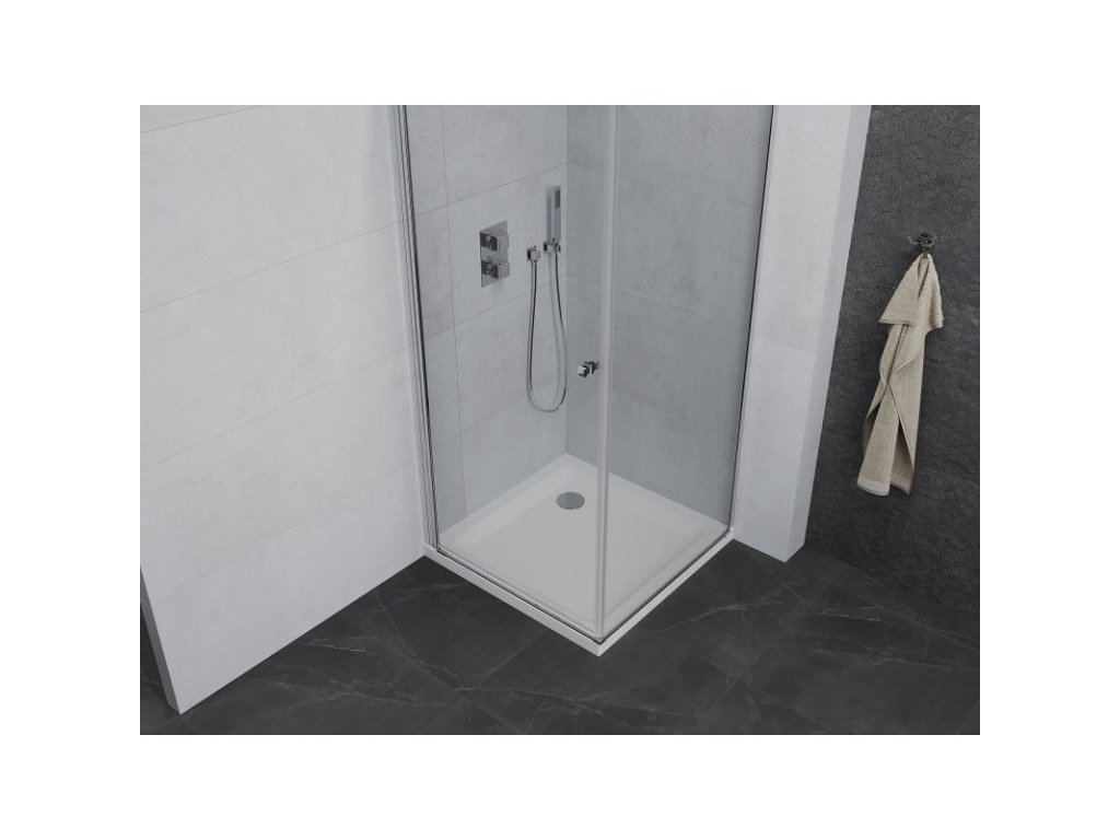 Mexen Pretoria sprchový kút otvárací 70 x 70 cm, priehľadné sklo, profil chróm + Flat sprchová vanička, biela - 852-070-070-01-00-4010