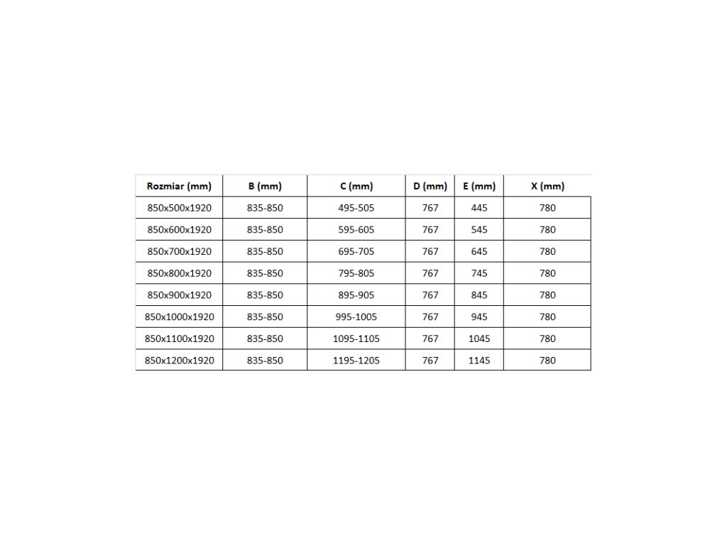 rozmery: 85x80 cm (dvere 85 cm, fixná stena 80 cm)