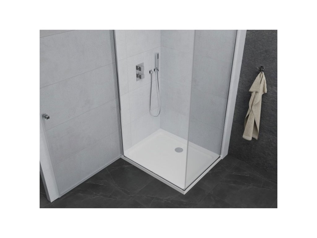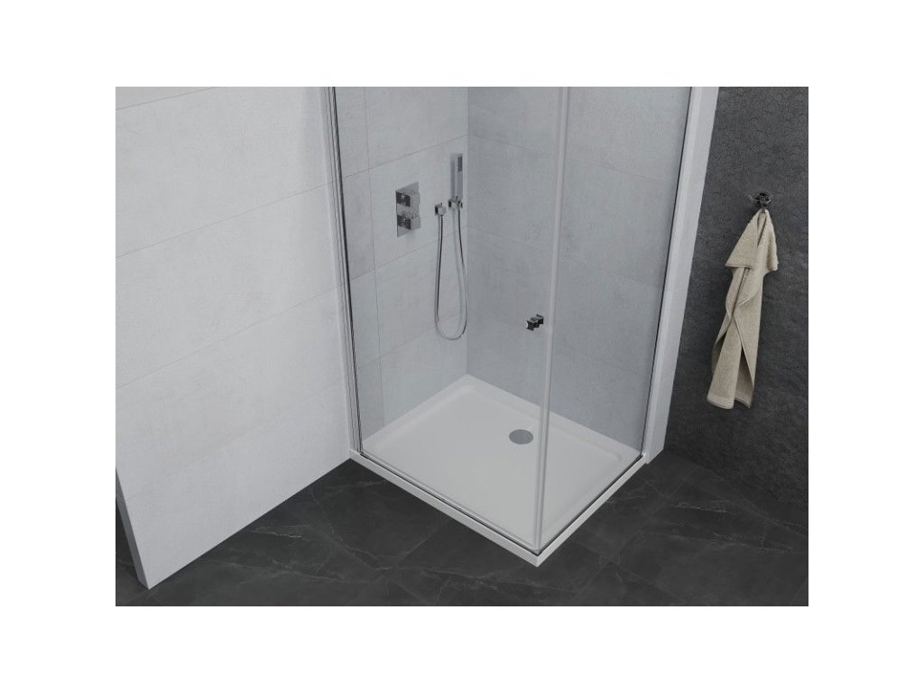 Mexen Pretoria sprchový kút otvárací 90 x 100 cm, priehľadné sklo, profil chróm + Flat sprchová vanička, biela - 852-090-100-01-00-4010
