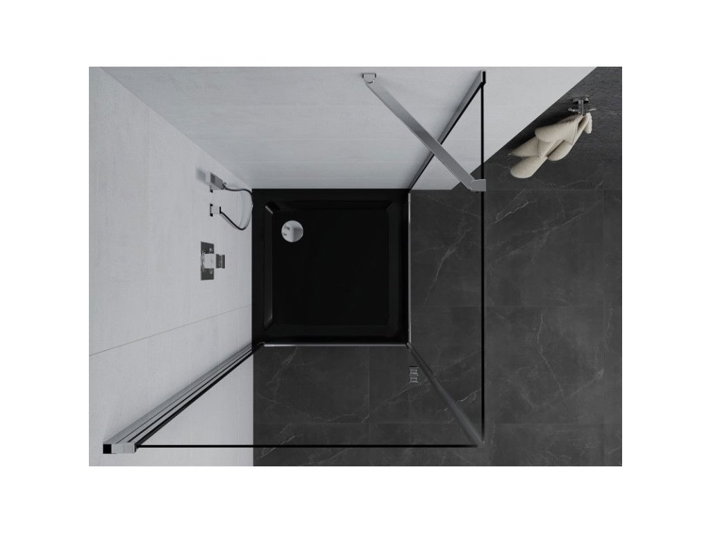 Mexen Pretoria výklopný sprchový kút 100 x 100 cm, priehľadný, chróm + Plochá sprchová vanička, čierna - 852-100-100-01-00-4070