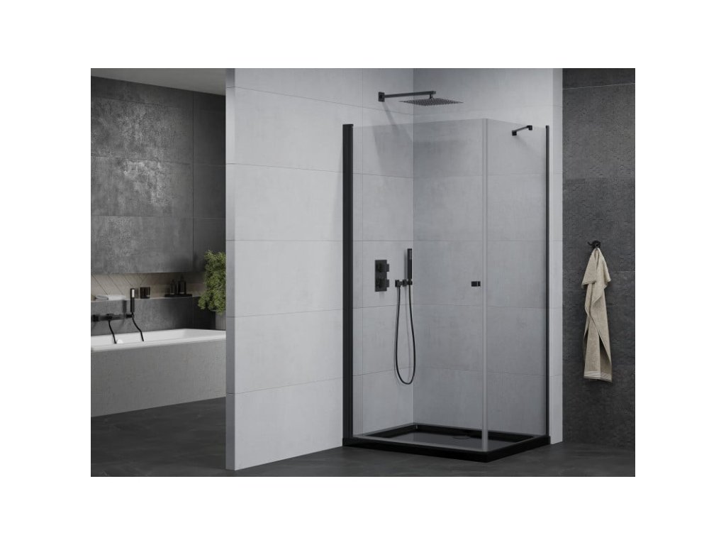 Mexen Pretoria výklopný sprchový kút 100 x 70 cm, priehľadný, čierny + Plochá sprchová vanička, čierna - 852-100-070-70-00-4070B