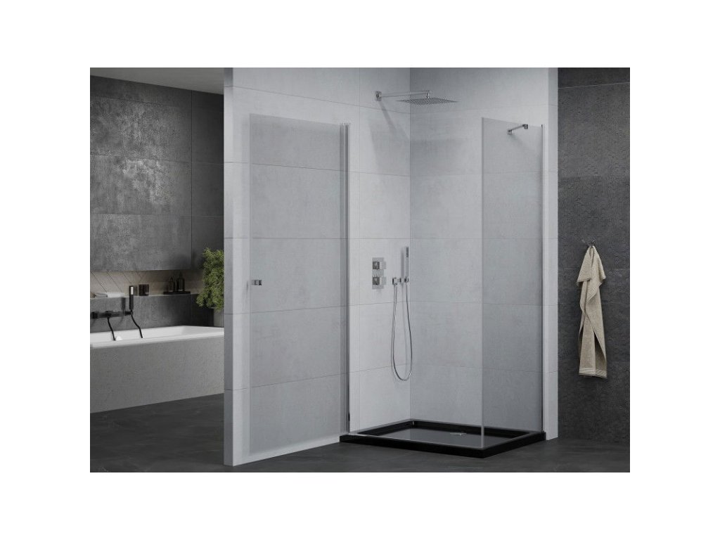 Mexen Pretoria výklopný sprchový kút 100 x 80 cm, priehľadný, chróm + Plochá sprchová vanička, čierna - 852-100-080-01-00-4070