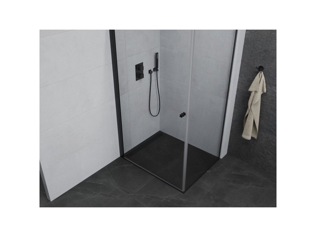 Mexen Pretoria výklopný sprchový kút 100 x 90 cm, priehľadný, čierny - 852-100-090-70-00