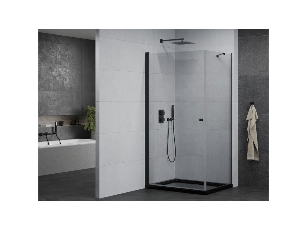 Mexen Pretoria výklopný sprchový kút 80 x 100 cm, priehľadný, čierny + Plochá sprchová vanička, čierna - 852-080-100-70-00-4070B