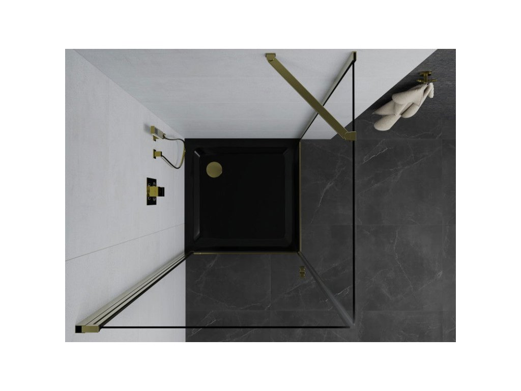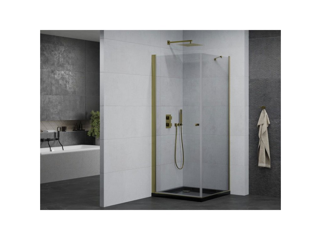 Mexen Pretoria výklopný sprchový kút 80 x 80 cm, transparentný, zlatý + Plochá sprchová vanička, čierna - 852-080-080-50-00-4070G