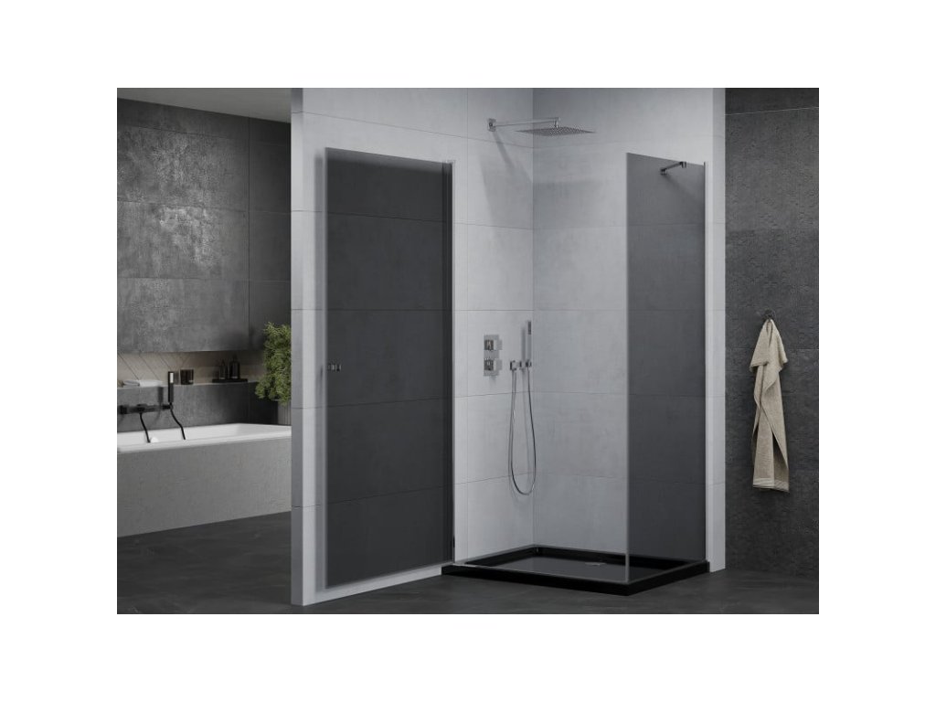 Mexen Pretoria výklopný sprchový kút 90 x 120 cm, grafit, chróm + Plochá sprchová vanička, čierna - 852-090-120-01-40-4070