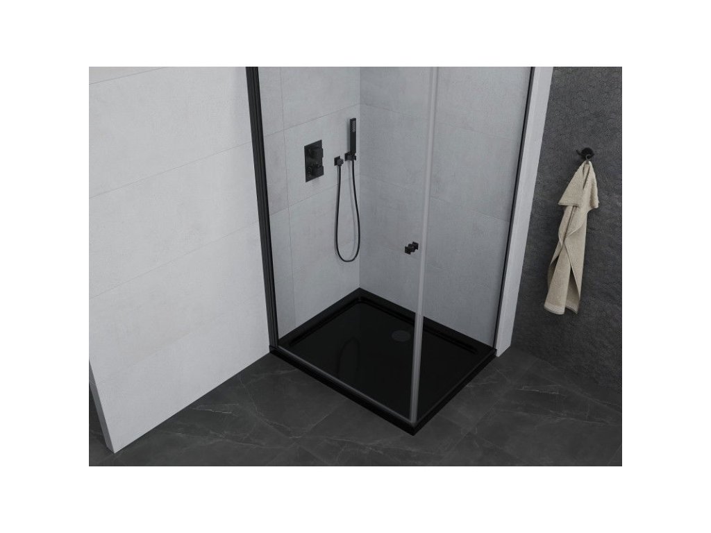 Mexen Pretoria výklopný sprchový kút 90 x 70 cm, priehľadný, čierny + Plochá sprchová vanička, čierna - 852-090-070-70-00-4070B