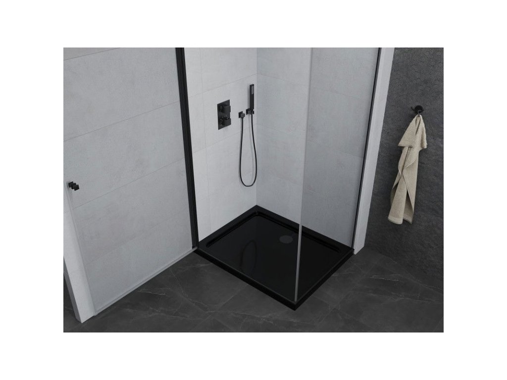 Mexen Pretoria výklopný sprchový kút 90 x 80 cm, priehľadný, čierny + Plochá sprchová vanička, čierna - 852-090-080-70-00-4070B
