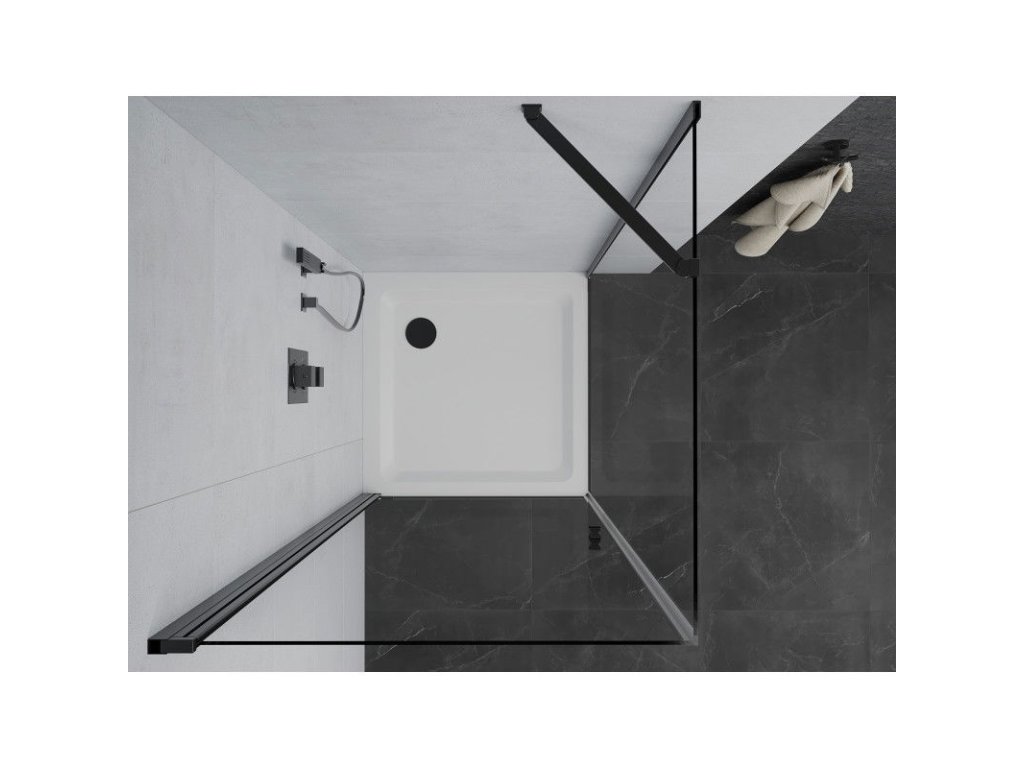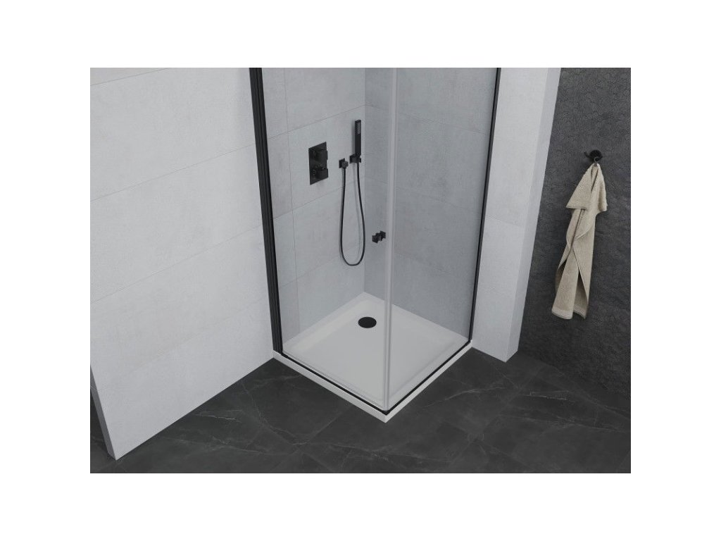 Mexen Pretoria výklopný sprchový kút 90 x 90 cm, priehľadný, čierny + Plochá sprchová vanička - 852-090-090-70-00-4010B