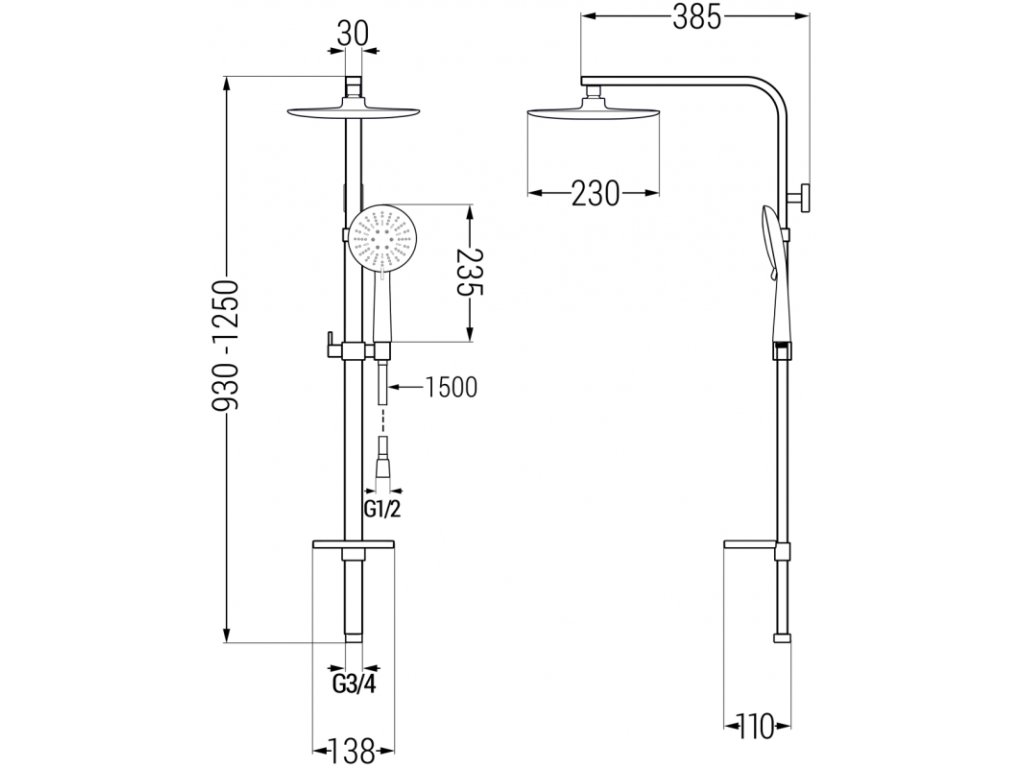 \nVeľkosť dažďovej sprchy: ø230 mm