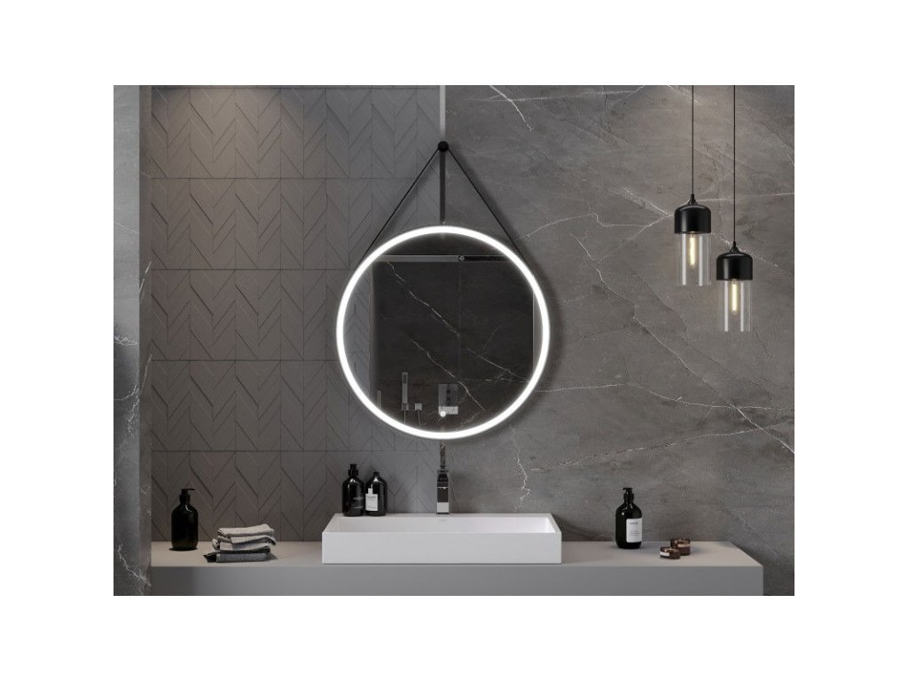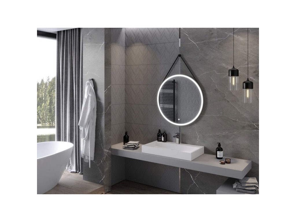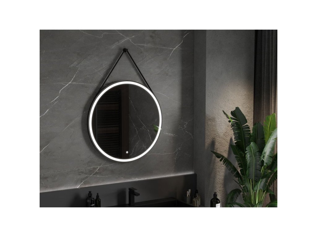 Mexen Reni osvetlené kúpeľňové zrkadlo, kruhové 80 cm, LED 6000K, antipara, čierny rám - 9812-080-080-611-70