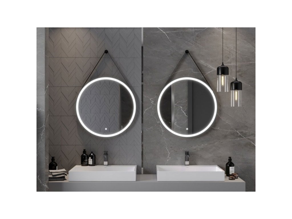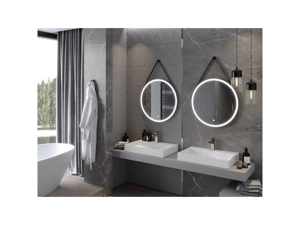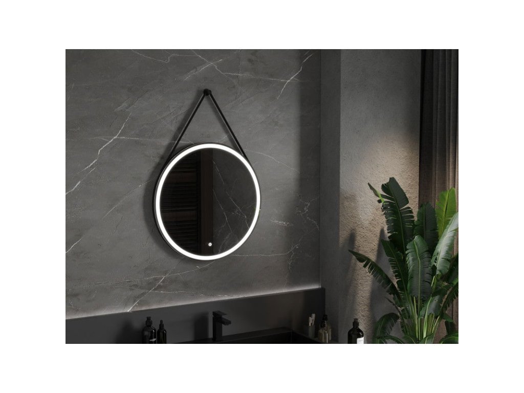 Mexen Reni osvetlené kúpeľňové zrkadlo, okrúhle 70 cm, LED 6000K, antipara, čierny rám - 9812-070-070-611-70